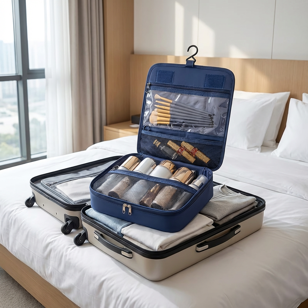 Avant chaque départ, c’est souvent la même chose : les produits sont mélangés, certains disparaissent au fond de la valise et vous perdez du temps à tout chercher. Avec cet organisateur, votre façon de voyager change complètement. Chaque objet trouve naturellement sa place dans un compartiment dédié. Dès que vous ouvrez votre sac, tout est visible, ordonné et accessible. Vous commencez votre voyage plus sereinement, sans stress inutile, et vous profitez pleinement de chaque moment.