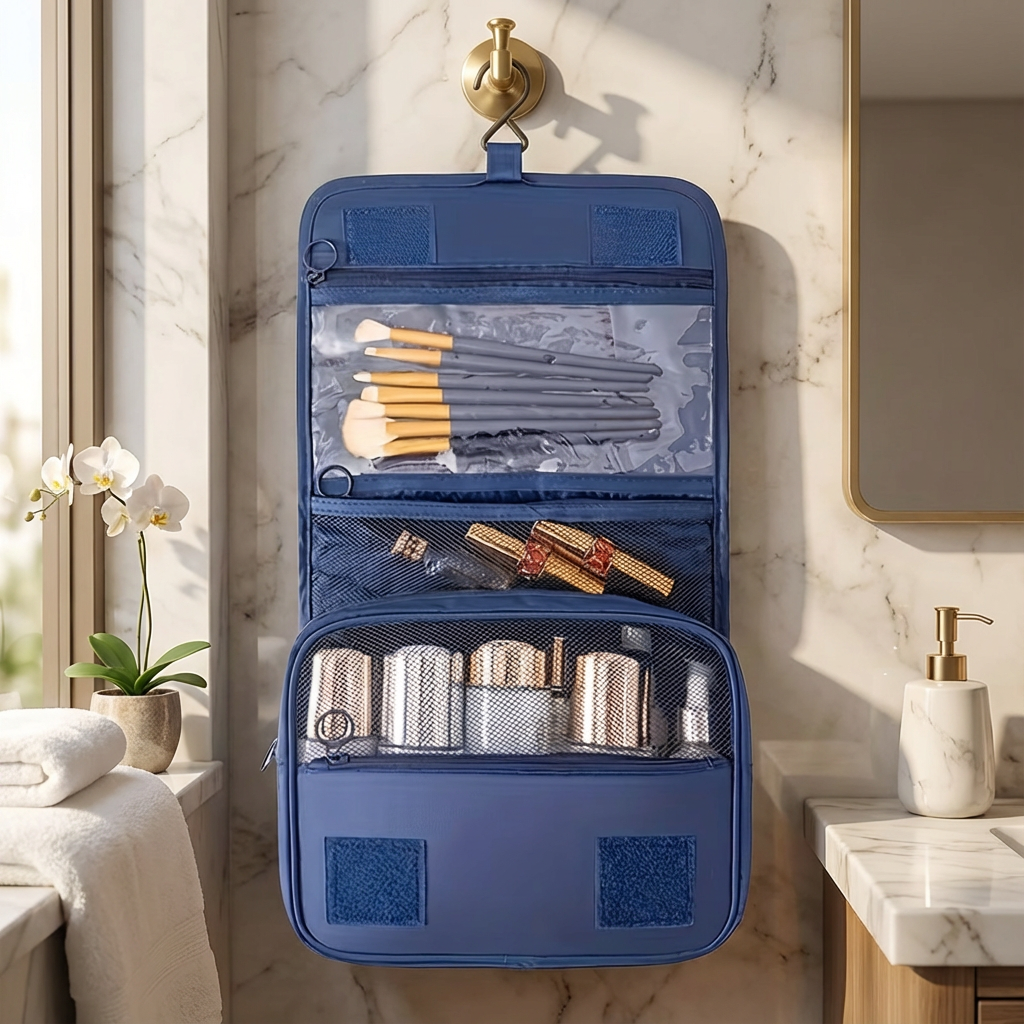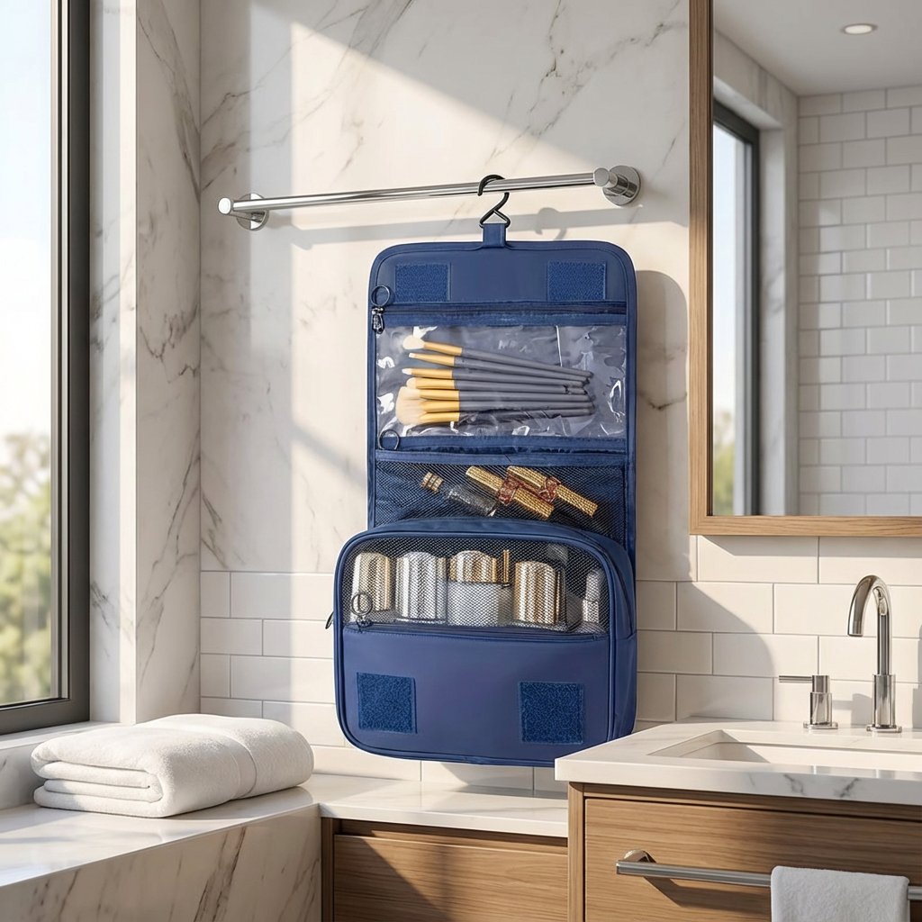 Que vous soyez à l’hôtel, en déplacement professionnel ou en vacances, vous méritez le même confort qu’à la maison. Il suffit de suspendre l’organisateur pour transformer n’importe quel espace en un coin parfaitement organisé. Vous retrouvez facilement vos produits, suivez votre routine sans contrainte et gagnez en confort au quotidien. Un petit détail qui fait une grande différence dans votre expérience de voyage.